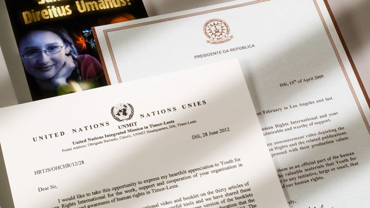 “Il buon lavoro intrapreso da Gioventù per i Diritti Umani Internazionale è ammirevole e degno di supporto. Sarei onorato di suggerire il loro inserimento come partner ufficiale del programma di educazione ai diritti umani del mio paese.” Presidente di Timor Est